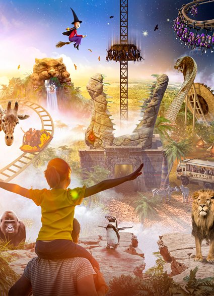 منطقة تجمع بين الألعاب وحديقة الحيوانات، ويمكنك مشاهدة النمور عن قرب أثناء الركوب!